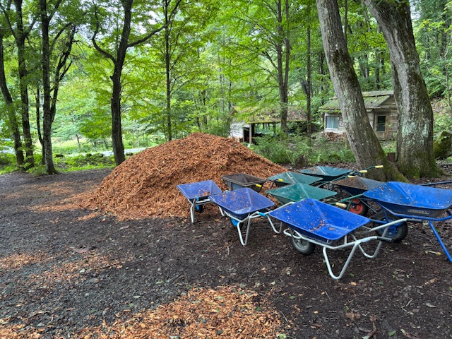 この日の作業は、木のチップを遊歩道に敷くこと。
