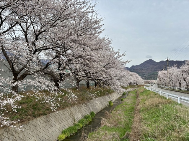 上田に向かって走ればこんなきれいなサクラを観ることができます。