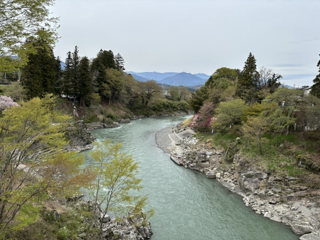 上流からあの船に乗って「天竜川下り」をやっています。